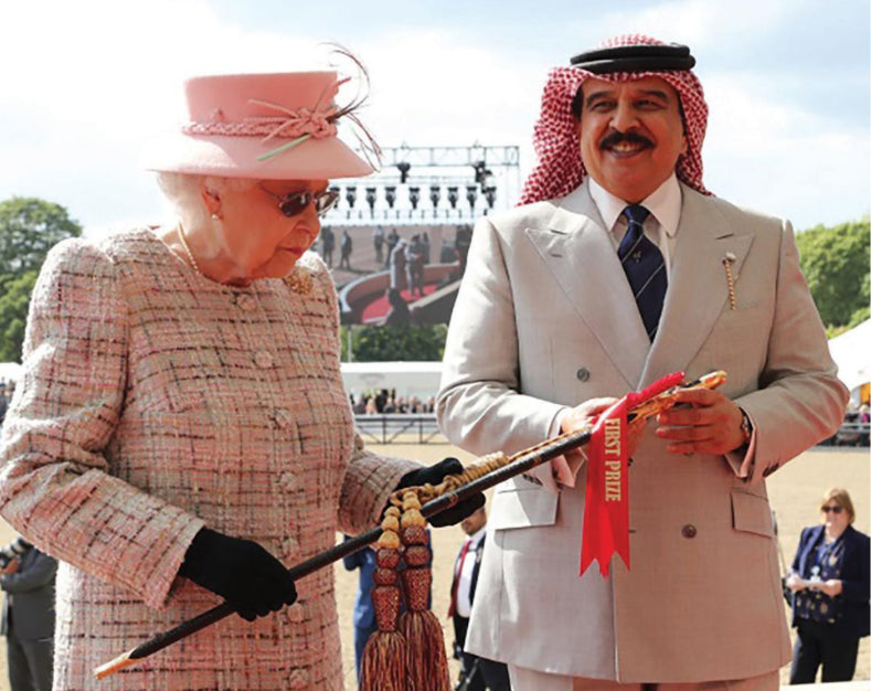 “لحظة فارقة في إرث عائلة الصايغ — تقديم سيف بحريني مُصاغ يدويًا إلى جلالة الملكة إليزابيث الثانية، في تجسيد لفن العائلة وإرثها واعترافها الدولي.